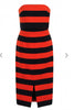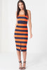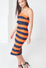 Orange & Navy Stripe Print Bandeau Midi Dress